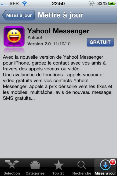L’application Yahoo! Messenger a été mise à jour en version 2.0, avec comme principale nouveautés l’appel visio entre iPhone / PC / Mac.