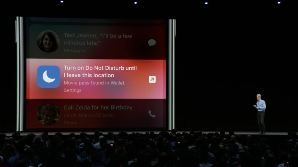 - Arrivée des shortcuts (raccourcis) sur Siri. Vous pouvez désormais assigner des actions à des phrases pré-définies en fonctions de vos habitudes. Siri vous suggèrera également des actions selon plusieurs paramètres (heure, environnement, habitudes, etc.). Par exemple, si vous allez au cinéma, Siri mettra votre iPhone en silencieux. Les développeurs pourront proposer des raccourcis pour rendre Siri beaucoup plus utile.