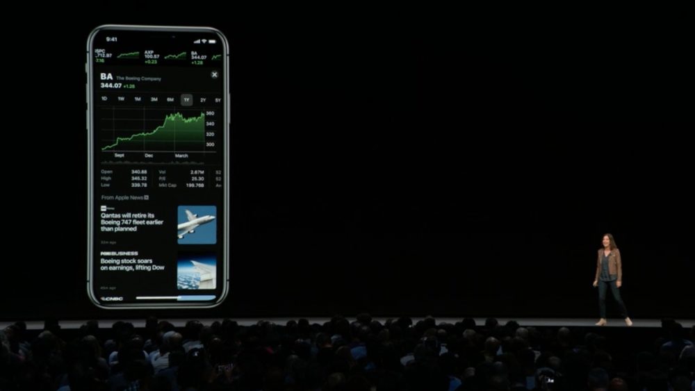 - Mise à jour de l’app Bourse avec un nouveau design et arrivée des « business news » sur l’app, dont celles d’Apple. L’app est désormais compatible iPad.