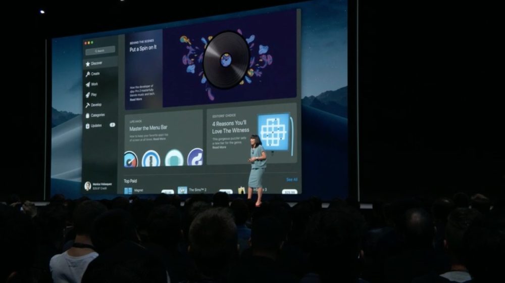 - Arrivée d’un tout nouveau Mac App Store sur macOS à l’instar d’iOS 11 l’année dernière avec une refonte drastique et complète. Plusieurs nouveaux onglets : « Discover », « Create », « Work », « Play », « Develop », amélioration de la fonctionnalité permettant de laisser des avis et ajout des vidéos sur les pages d’apps.