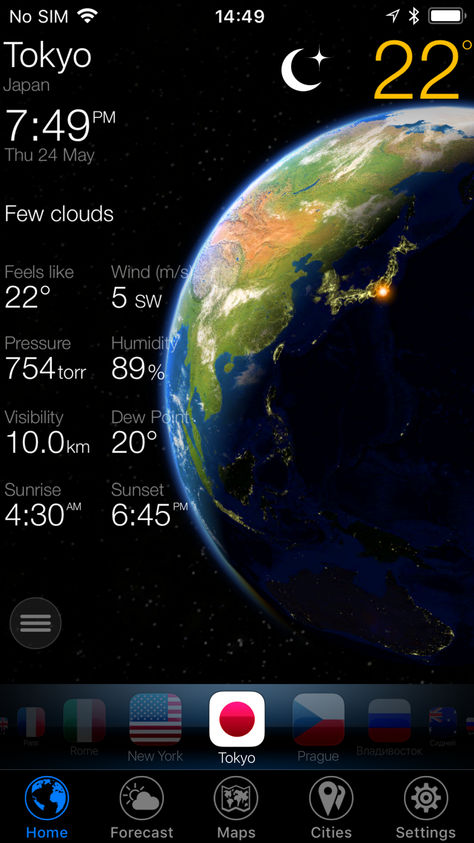 Appli de météo avec une vue de la Terre en 3D.