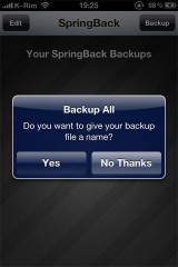 Son fonctionnement est très simple, une fois installé, lancez l’application depuis la SpringBoard et tapez le bouton [Backup] en haut à droite.