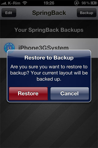 SpringBack est le célèbre tweak qui vous permet de sauvegarder la positions des icônes sur la SpringBoard. Ce dernier n’étant plus compatible iOS 4 est tombé dans l’oubli.