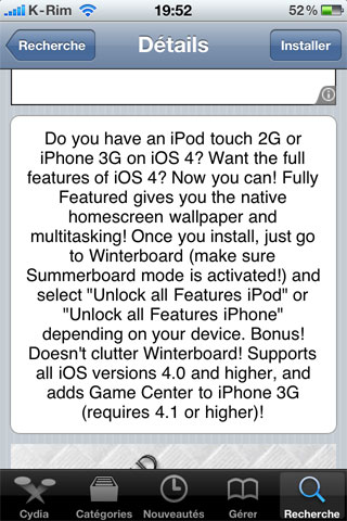 Cydia – Fully Featured : Activer toutes les fonctionnalités de l’iOS 4 sur iPod Touch 2G et iPhone 3G