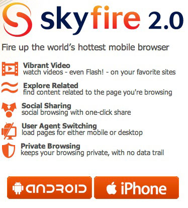 « Skyfire for iPhone Hello Skyfire 2.0 for iPhone fans! We have received some helpful feedback from Apple, made some great updates to our product over the past month, and think we are closer than ever to getting Skyfire on your iPhones. Thank you for your patience! Here is a new Press Demo video which we are sharing with Press today. »