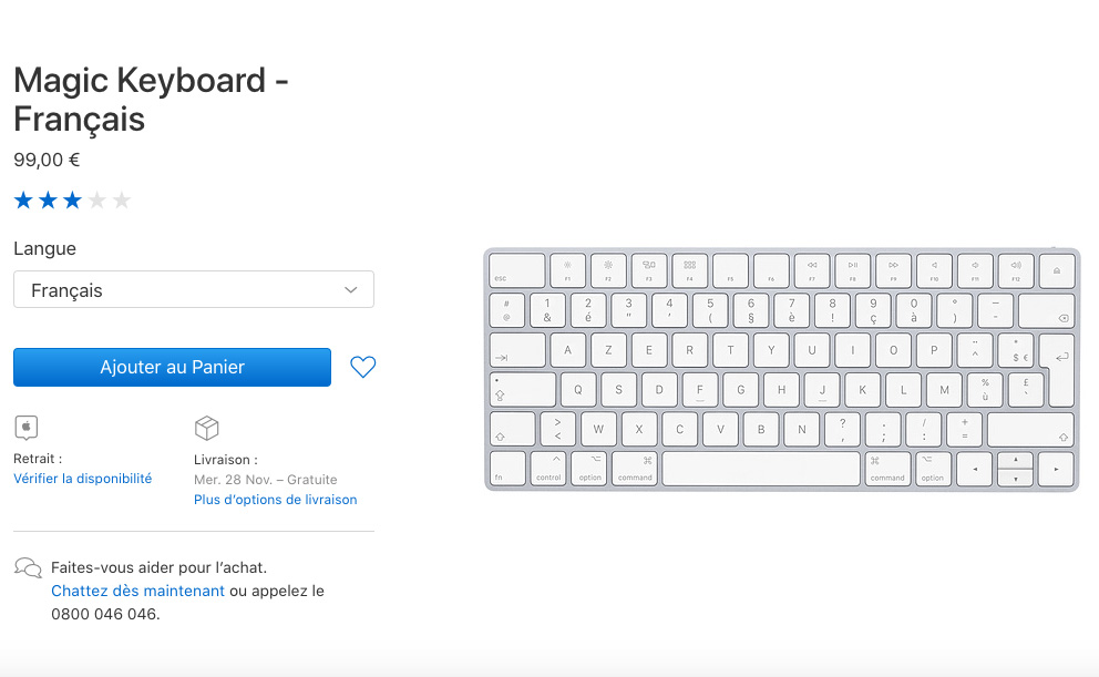 Apple a revu le prix du Magic Keyboard, son clavier sans fil (sans pavé numérique). Le prix de ce dernier est passé de 119 euros à 99 euros ; soit une réduction de 20 euros.