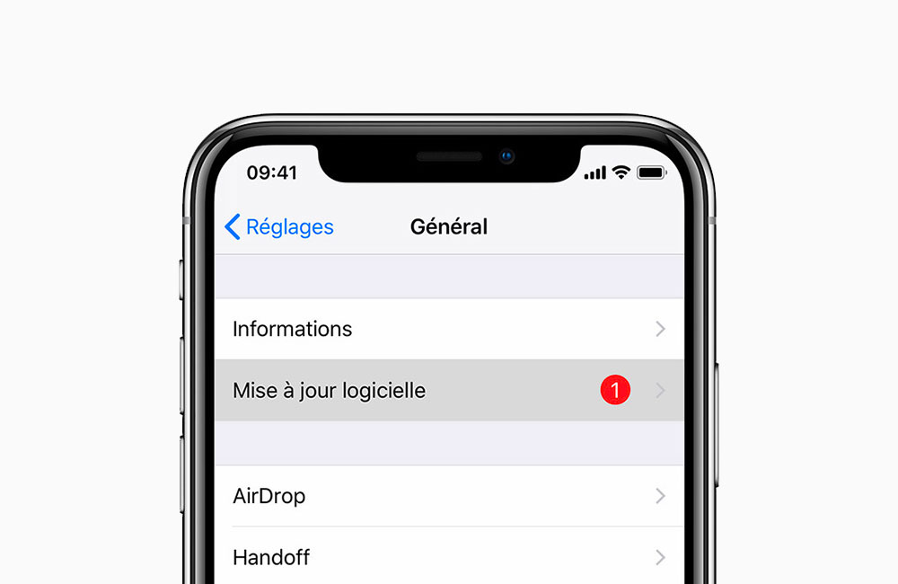 1.2. Puis Général > Mise à jour logicielle;
