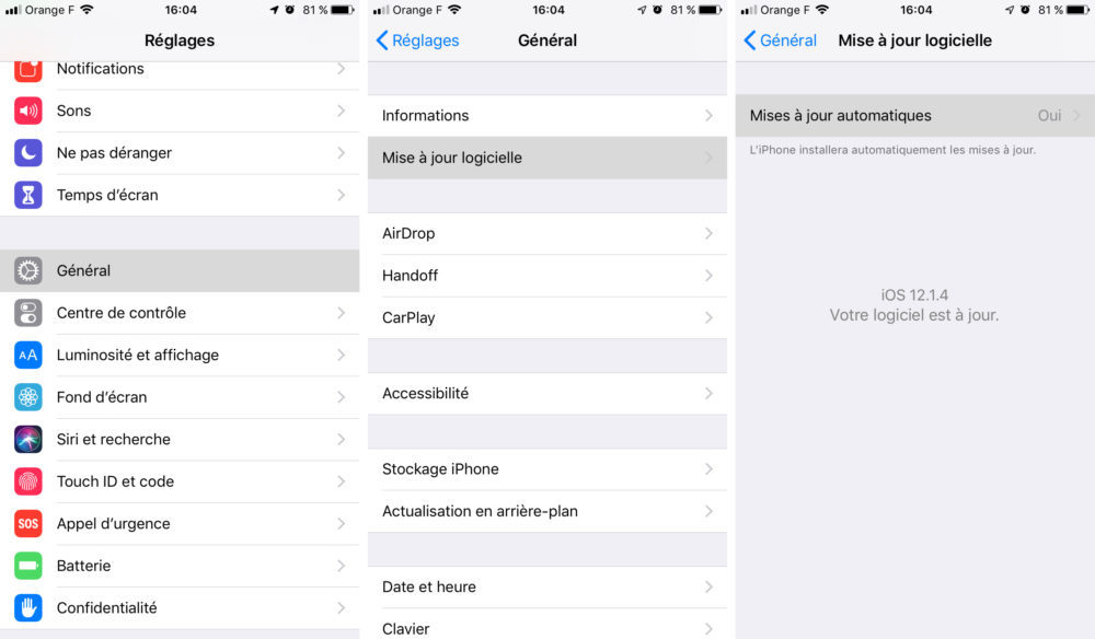 Depuis iOS 12, vous pouvez activer les mises à jour automatiques et permettre à votre appareil d’effectuer les mises à jour pendant la nuit lorsqu’il est branché sur secteur avec une connexion Wi-Fi.