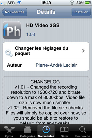 Cydia – HD Video 3GS : Activez l’enregistrement HD sur 3GS en 1 clic [EDIT]