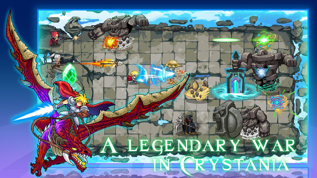 Crystania Wars contient des éléments de stratégie en temps réel, avec les règles du Tower Defense et un style de combat proche de celui d’un MMO.