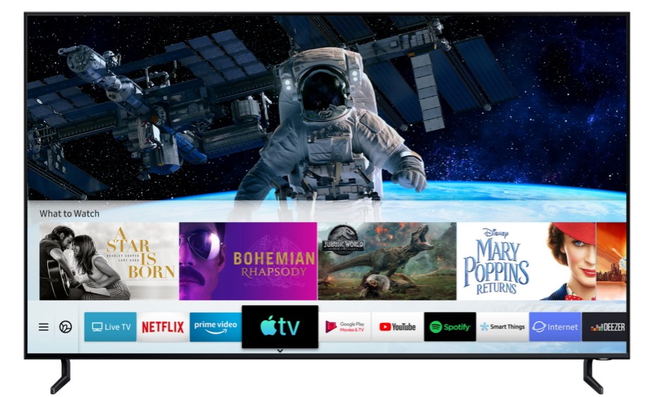 Suite au déploiement d’iOS 12.3 et de tvOS 12.3 qui a apporté la nouvelle application de TV d’Apple, l’application (ainsi qu’AirPlay 2) est également disponible sur les smart TV de Samsung par le biais d’une mise à jour.