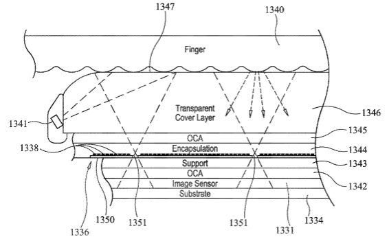 Ainsi, un nouveau brevet, publié le 23 mai 2016 – soit une année avant la présentation de l’iPhone X, a fait son apparition il y a quelques jours. Ce brevet montre un système comportant des petits trous dans l’écran qui permet d’engendrer le capteur d’empreintes digitales. Ces petits trous seront donc capables de diriger la lumière vers le doigt de l’utilisateur et ainsi créer une image optique du doigt de ce dernier pour ensuite développer une empreinte digitale.