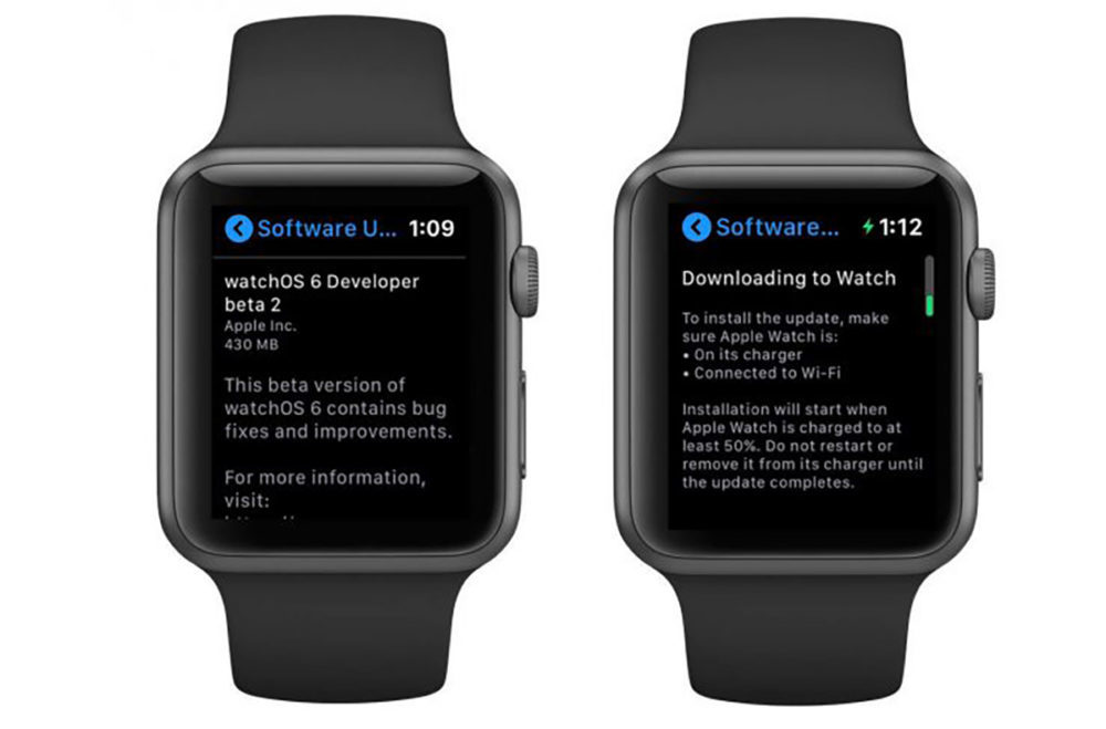 La version de watchOS 6 – actuellement disponible en version bêta auprès des développeurs – dispose d’une nouvelle section qui permet de rechercher les mises à jour depuis la montre en OTA (Over the Air). Une fois que l’utilisateur a trouvé la mise à jour, l’Apple Watch va lui proposer de faire le téléchargement et d’accepter les termes et les conditions depuis son iPhone. Après avoir accepté les termes et les conditions, l’Apple Watch va s’occuper du reste. Toutefois, l’Apple Watch doit être branchée à son chargeur et connectée à un réseau Wi-Fi durant le processus de téléchargement et d’installation.