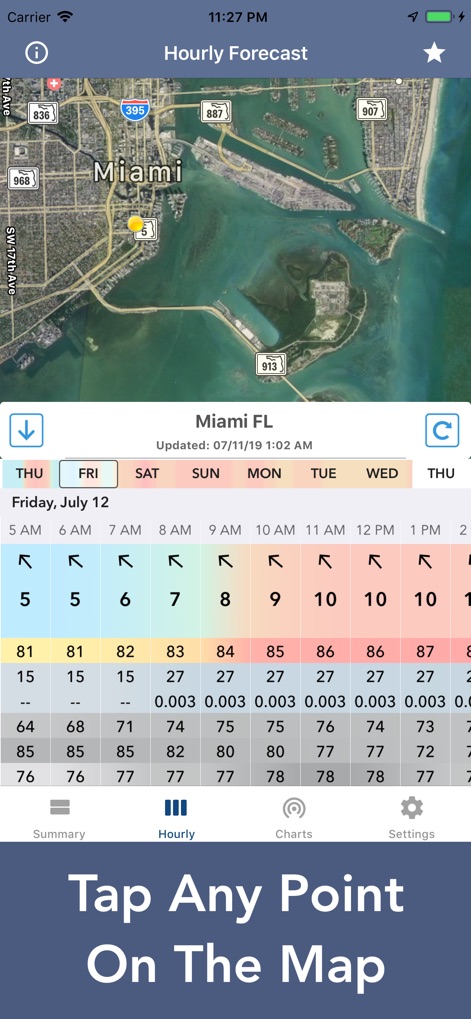 Appuyez simplement n’importe où sur la carte et visualiser les prévisions météorologiques de la NOAA.