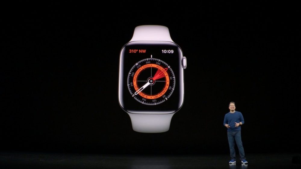 • La boussole arrive sur l’Apple Watch Series 5. En plus de vous indiquer le Nord dans l’application (sûrement du même nom), elle est utilisée dans Plans pour savoir dans quel sens vous êtes. De nouvelles complications l’utilisent et bientôt des applications tierces ;