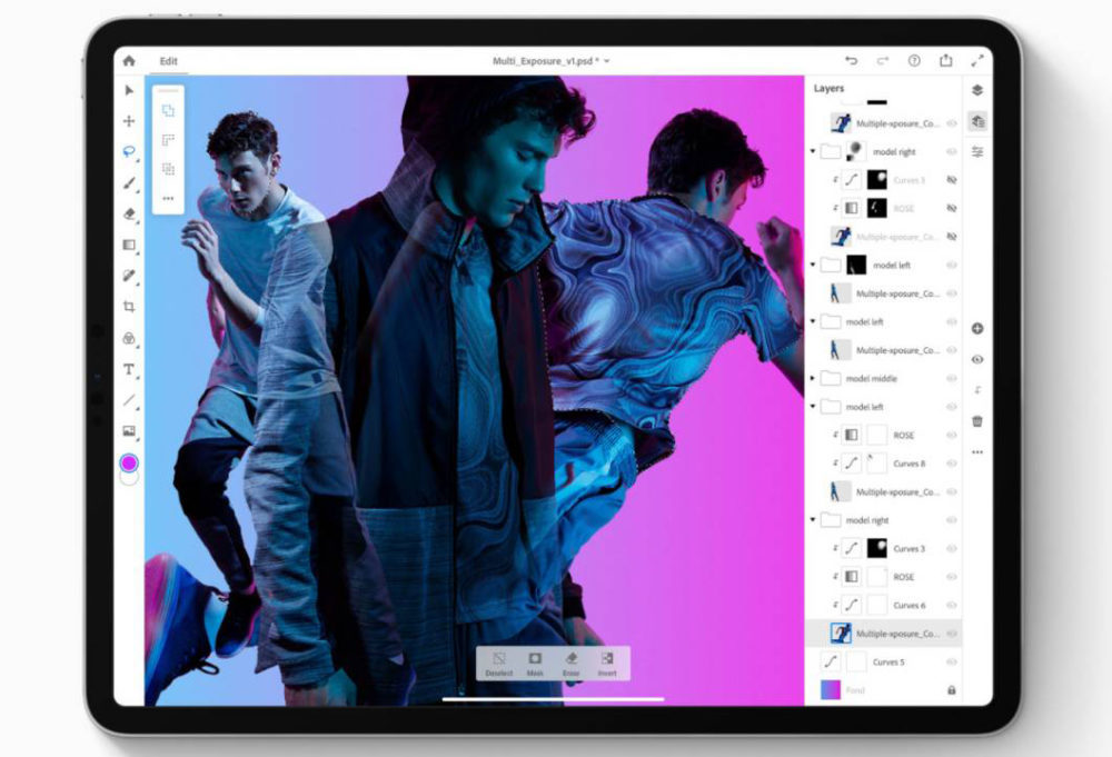 Par conséquent, les fonctionnalités clés, telles que les filtres, l’outil du pinceau, les bibliothèques de pinceaux personnalisées, le dessin vectoriel, les espaces colorimétriques, l’édition RAW, les objets dynamiques, les styles de calque et les options de création de masques ne seront pas disponibles sur iPad pour l’instant.