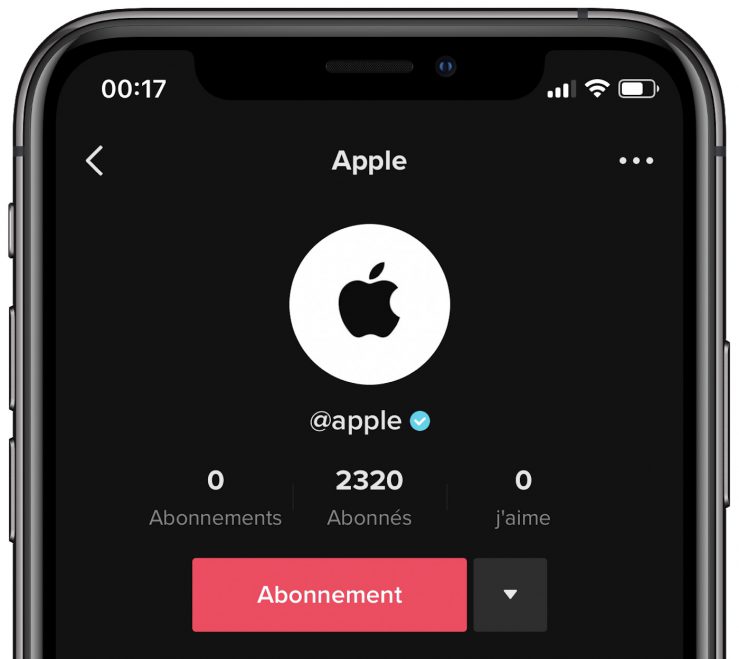 Apple dispose désormais d’un compte TikTok, une plateforme qui permet aux utilisateurs de partager de courtes vidéos. Le nom d’utilisateur du Californien sur l’application est tout simplement @apple. Pour l’instant, Apple n’a publié aucune vidéo sur le compte.