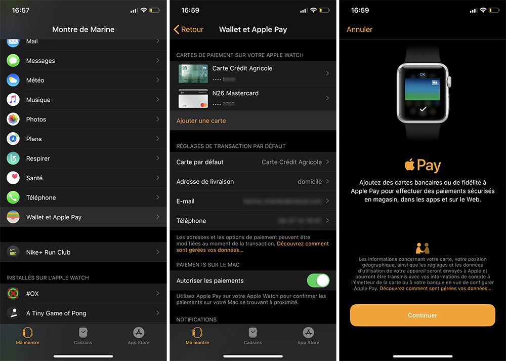 Toutefois, si vous souhaitez ajouter une carte à Apple Pay sur votre Apple Watch plus tard :