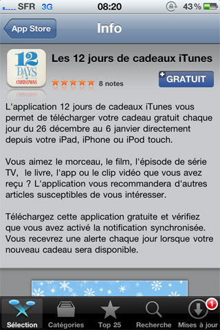 Tout comme l’année dernière, l’application « Les 12 jours cadeaux iTunes » vient de faire son apparition sur l’AppStore.