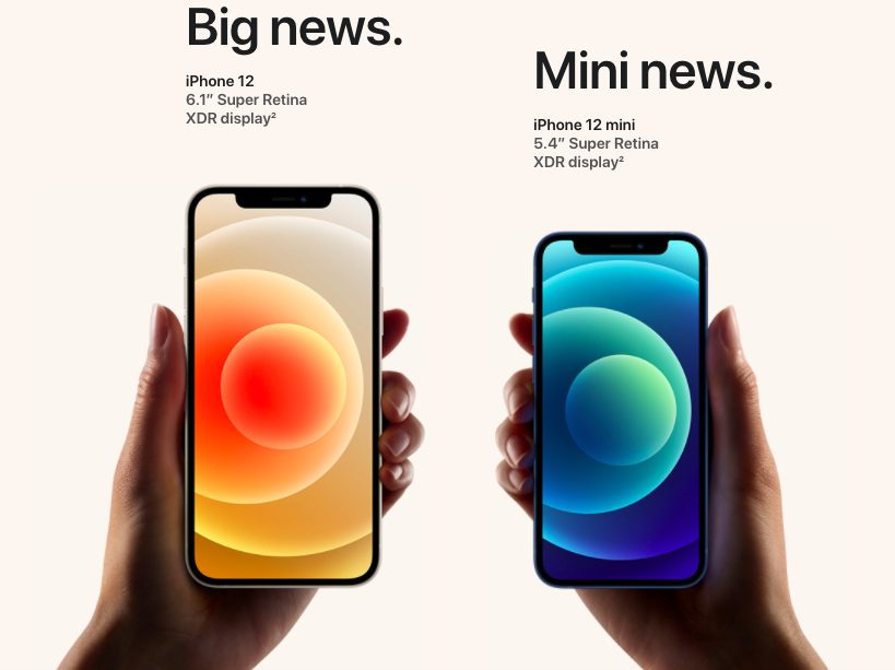 Avec l’iPhone 12 avec un écran de 6,1 pouces et l’iPhone 12 mini avec un écran de 5,4 pouces, Apple propose un nouveau design qui est semblable à celui des iPad Pro actuels, qui lui a repris un peu le design de l’iPhone 4, l’iPhone 4s, l’iPhone 5 et l’iPhone 5s. Ils sont dotés d’un écran OLED Super Retina XDR. L’iPhone 12 est équipé de la puce A14 Bionic d’Apple. Cette nouvelle puce permet à l’iPhone de jouir de nouvelles puissances et de jouer à des jeux qui nécessitent beaucoup de puissance.