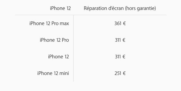 Après le lancement de la précommande des iPhone 12 mini et des iPhone 12 Pro Max, Apple a dévoilé les prix de réparation des modèles en question.