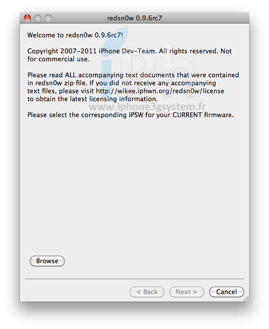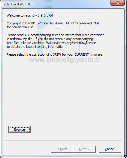 1. Jailbreak de votre appareil grâce à redsn0w 0.9.6rc7