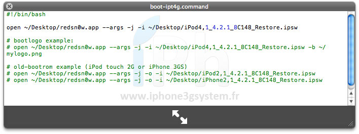 Vous pouvez éditer ce .command et y modifier le nom du firmware par exemple. (De base le .command est réalisé pour iPod Touch 4G).