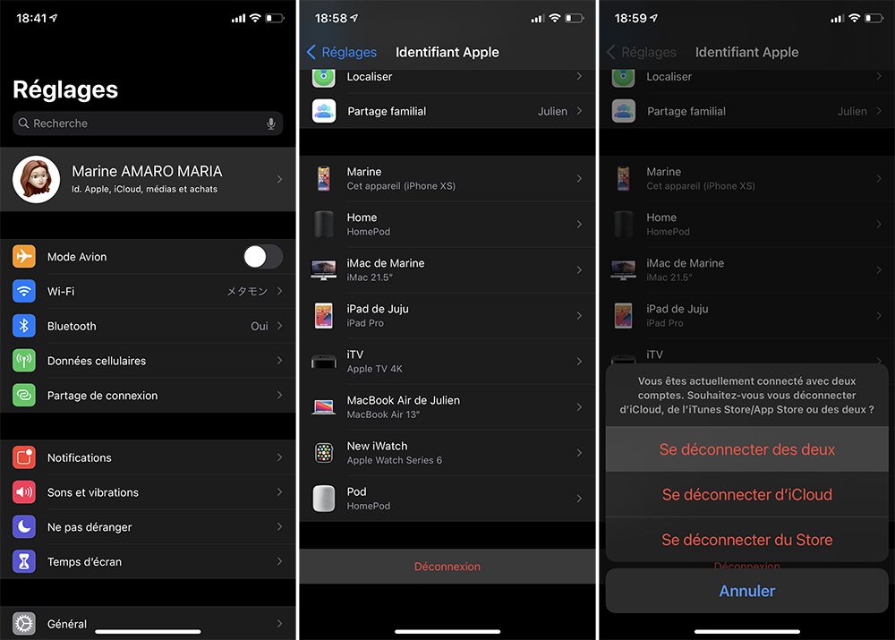 Après avoir sauvegardé votre iPhone, le plus important est de déconnecter vos identifiants Apple. On parle bien ici de « vos » identifiants Apple puisque le compte iCloud et le compte App Store peuvent être 2 identifiants Apple différents.