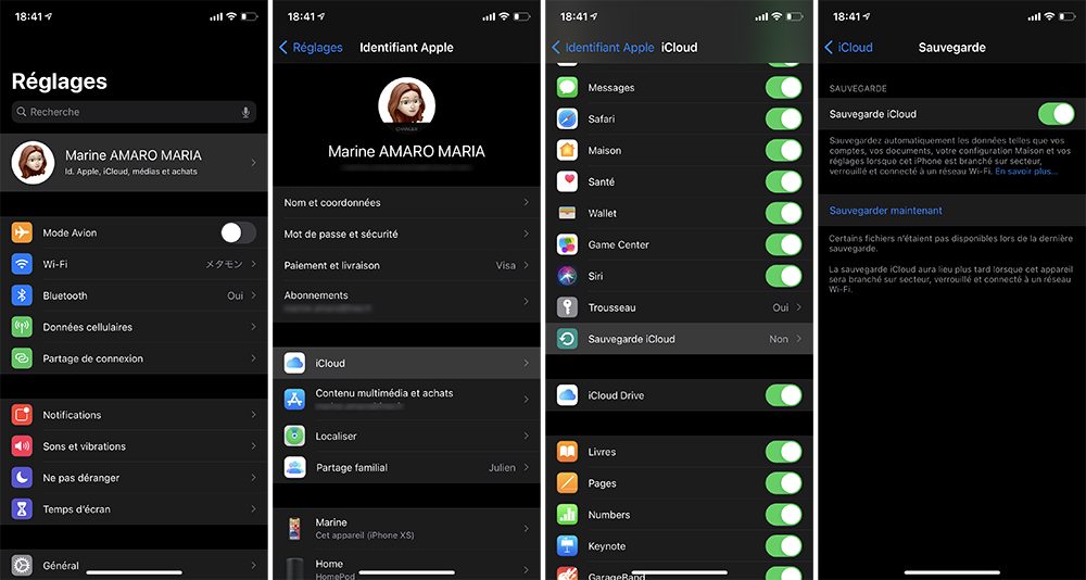 Vous pouvez effectuer une sauvegarde locale avec Finder ou iTunes ou une sauvegarde iCloud en allant dans Réglages > votre nom > iCloud > Sauvegarde iCloud sur votre iPhone.