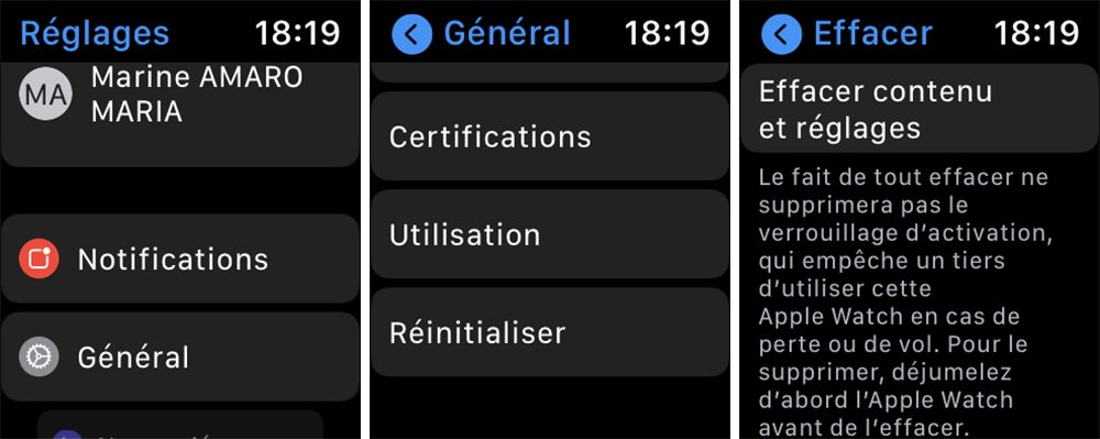 1.2. Effacer le contenu et les réglages depuis l’Apple Watch