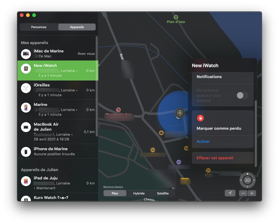 2.2. Trouvez votre Apple Watch dans la liste de vos appareils (selon l’appareil, pressez ⓘ) ;