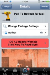 Pull To Refresh For Mail est un tweak, pour ceux ne connaissant pas, qui vous permet de modifier l’application mail. En effet, en « tirant » vos mails vers le bas puis en relâchant, les mails seront mis à jour.