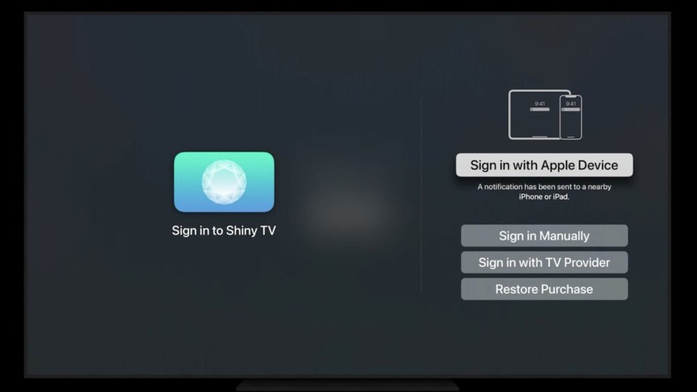 Pour qu’une application puisse demander à l’utilisateur de s’identifier avec Face ID ou avec Touch ID (selon le modèle de son iPhone), les développeurs qui ont une application sur l’Apple TV doivent intégrer cette nouveauté à leur application avec tvOS 15. Alors, quand les utilisateurs tentent de se connecter, ils verront une option « Se connecter avec un produit Apple » au lancement de l’application. La sélection de cette option va ensuite envoyer une notification sur l’iPhone de l’utilisateur qui sera invité à appuyer dessus afin d’utiliser Face ID ou Touch ID pour s’authentifier. Dès lors, l’iPhone utilisera l’identifiant équivalent au Trousseau d’accès puis l’envoyer à l’Apple TV qui est sous tvOS 15 une fois que l’authentification via Face ID ou Touch ID sera confirmée.
