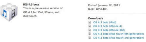 C’est peu surpris que nous vous apprenons que Apple a mis à disposition des développeurs le firmware 4.3 BETA 1.