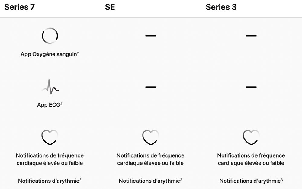 Par contre, seule la Series 7 possède les applications ECG et Oxygène sanguin.