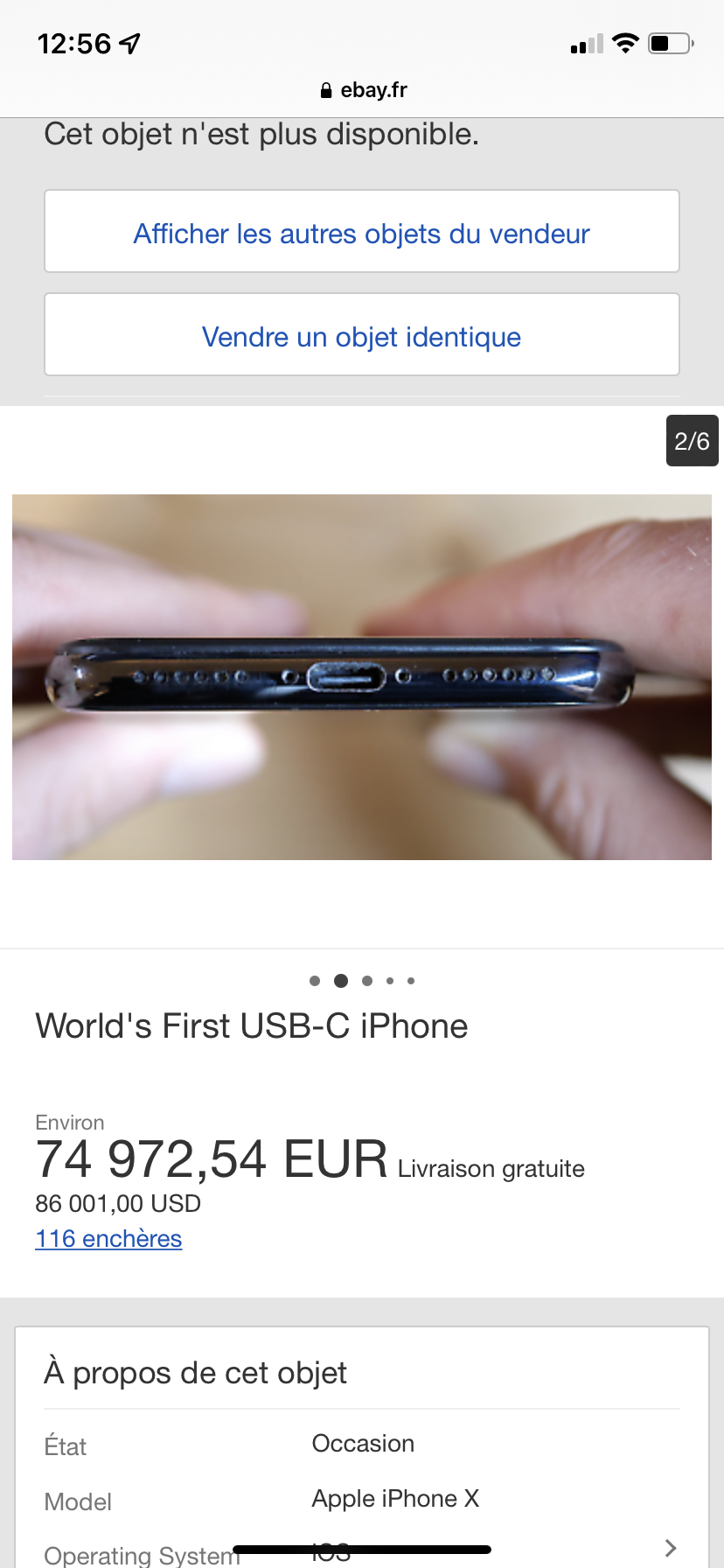 Les enchères pour l’iPhone avec un port USB-C ont atteint les 100 000 dollars sur eBay dans un certain temps et même jusqu’à 1 million de dollars certes, mais l’appareil est vendu pour 86 001 dollars. Les enchères pour l’iPhone X avec le port USB-C sont maintenant terminées, avec 116 au total, et l’identité de la personne qui a été le meilleur enchérisseur n’est pas dévoilée.