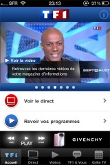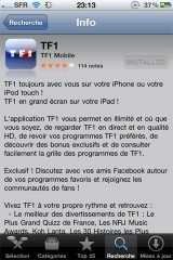 L’application de TF1 est enfin disponible. Celle-ci vous permet de visualiser en streaming la chaine TF1, via 3G ou wifi. A noter que la qualité vidéo est bluffante !
