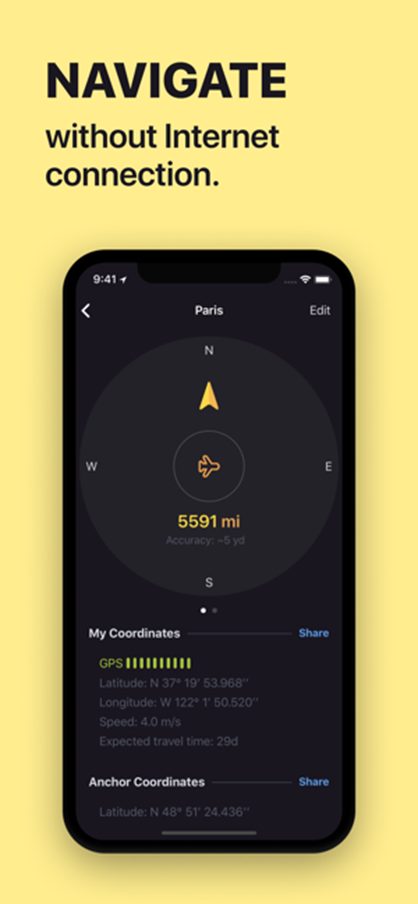 Orientez-vous avec une boussole. Enregistrez tous les endroits du monde, d’un hôtel dans un pays lointain à l’endroit où vous avez garé votre voiture. Trouvez où vous avez garé votre voiture en une minute. Si vous en avez assez de la perdre sur les parkings. Plus de sécurité en randonnée. Pendant votre randonnée, enregistrez les endroits pour retrouver votre chemin. Trouver un ami quand les cartes ne sont pas claires. Ne vous perdez plus en essayant de localiser vos amis sur une carte. Suivez simplement la flèche.