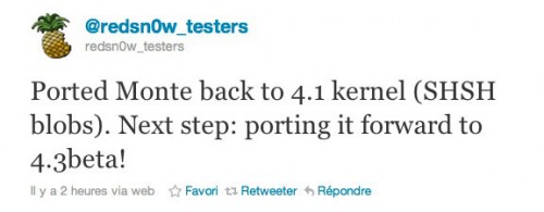 Le titre n’étant pas très explicite, voici de plus amples informations quant à ce jailbreak Monte. Tout d’abord, la dev team a publié via le twitter de redsn0w une information intéressante :