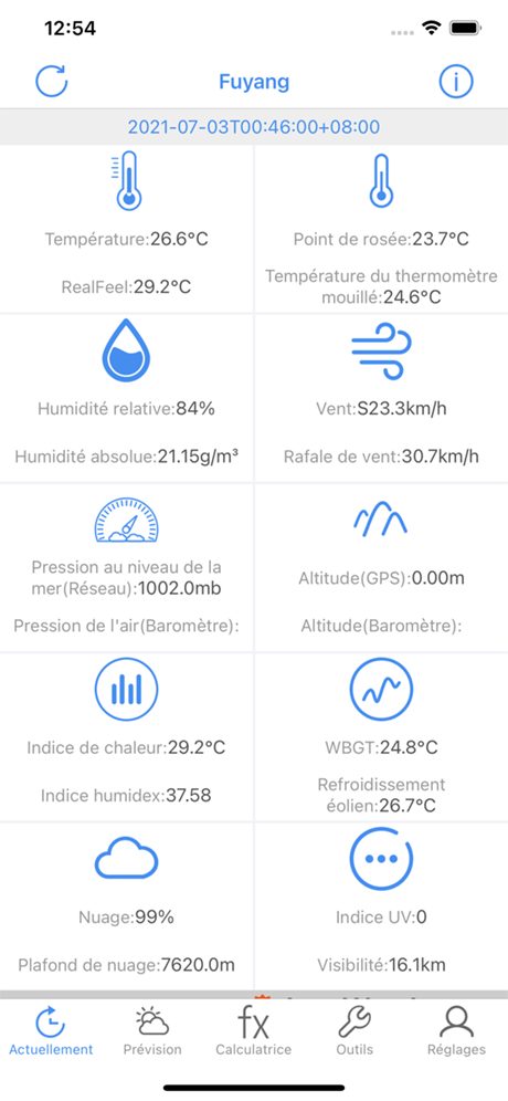 Meteo Calc est une application qui analyse l’état actuel de la météo. Analysez les conditions atmosphériques avec la température, l’humidité et la pression de l’air, obtenez des données telles que le point de rosée, la température du bulbe humide, la densité de l’air, la pression de vapeur et l’enthalpie. Combinant la température, l’humidité ou la température du point de rosée pour calculer l’indice de confort ou pour ajuster scientifiquement la température et l’humidité intérieures.