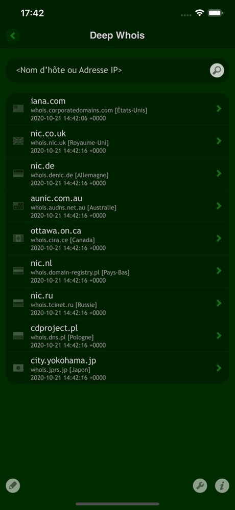 Deep Whois est l’application WHOIS la plus complète et la plus avancée. L’outil vous permet de rechercher des informations dans TOUTES les bases de données WHOIS pour TOUS les noms d’hôtes, domaines, TLD, sites Web, IDN, adresses IP (à la fois IPv4 et IPv6), plages de réseaux IP et systèmes autonomes (ASN, ISP ID). Deep Whois fonctionne immédiatement et trouve la propriété, le pays et plus d’informations sur tout sans avoir à s’embarrasser d’options complexes et de sélection de serveur.