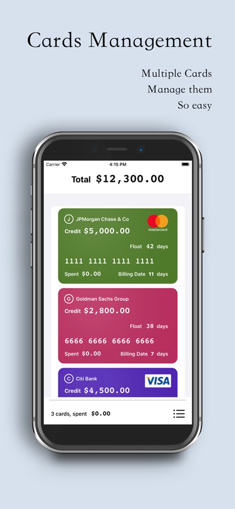 Il s’agit d’un outil de planification et de gestion des limites de carte de crédit hors ligne. Choses importantes Hors ligne, hors ligne, hors ligne, toutes les données restent dans cette machine, non connectées à Internet. Sur les appareils prenant en charge l’identification faciale/l’identification par empreinte digitale, vous pouvez utiliser la technologie fournie par Apple pour mieux protéger la sécurité des données.