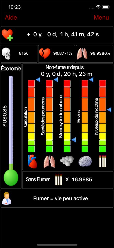 Entrez votre habitude de fumer et vos données personnelles. Regardez comme divers indicateurs affichent l’amélioration attendue de votre santé et de vos finances. Arrêter de fumer Sans rechuter avec le nouveau logiciel Ma dernière cigarette pour iOS et OSX, le logiciel original pour arrêter de fumer. Depuis 1999, Ma dernière cigarette a permis à 1 000 anciens fumeurs de ne pas rechuter. Si vous ne voulez vraiment pas rechuter, cette application pourrait alors faire toute la différence !