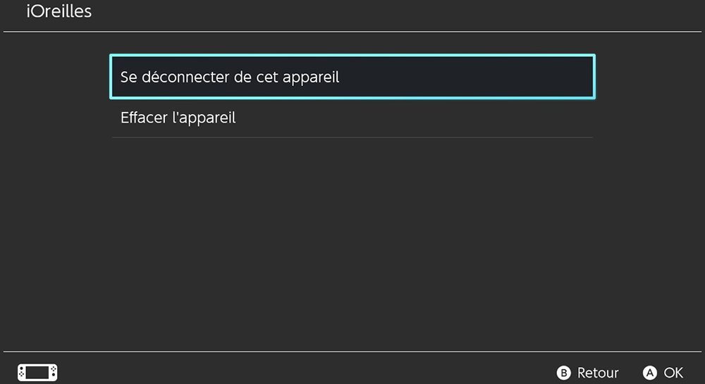 Il n’y a pas d’option supplémentaire. Cependant, vous allez pouvoir déconnecter vos AirPods ou les effacer de la mémoire de la Switch :