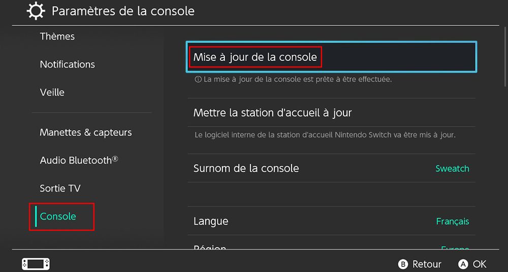 Comme toujours (ou presque), n’hésitez pas à faire la dernière mise à jour de la console en allant dans Paramètres de la console > Console > Mise à jour de la console.