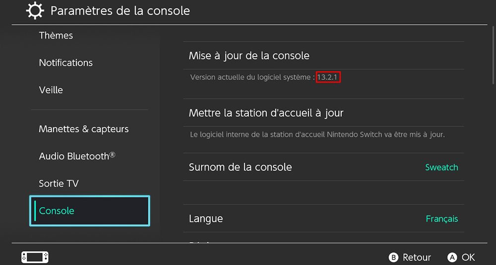 Une fois la console à jour, vous pouvez voir la version de votre console.