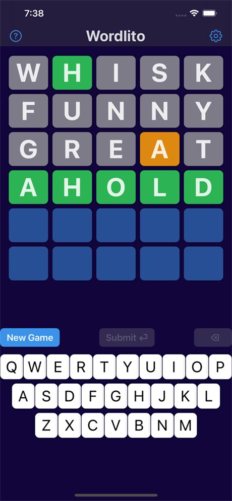 Un jeu de mots où vous devez trouver le mot caché de 5 lettres en 6 essais ou moins. On vous donne des indices avec les couleurs des lettres affichées. Vous n’êtes pas limité par le nombre de mots que vous pouvez trouver, jouez aussi longtemps que vous le souhaitez. Choisissez entre différents niveaux de difficulté de mots et une liste de mots avec l’orthographe britannique est également disponible. Jouez à deux jeux simultanément, côte à côte sur iPad.