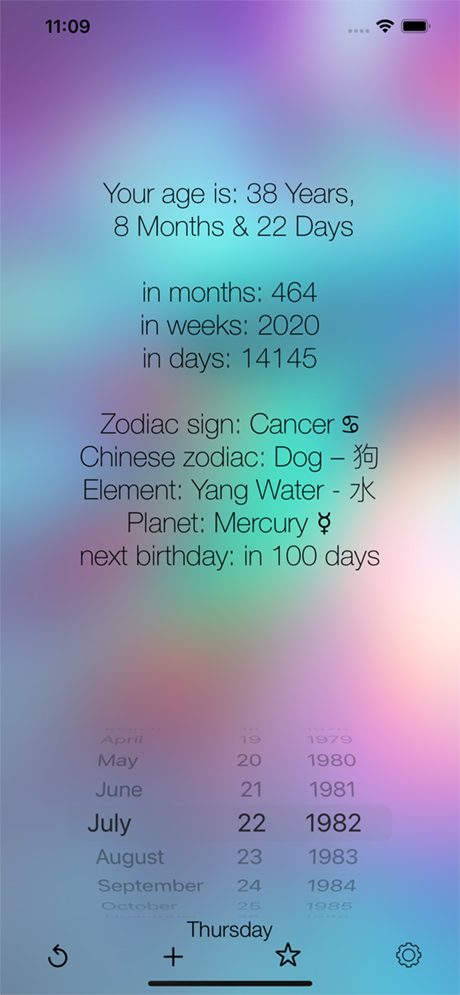 myAge calcule votre âge et l’affiche en années, mois, semaines et jours lorsque vous définissez votre anniversaire. De plus, myAge vous montrera votre zodiaque, votre zodiaque chinois et les éléments