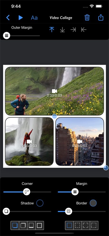 Video Collage vous permet de combiner plusieurs vidéos et de créer un magnifique collage vidéo. Vous pouvez créer un collage vidéo incroyablement beau grâce aux puissantes options de décoration telles que la mise en page, la forme, l’arrière-plan, le texte et l’autocollant. Il prend également en charge le diaporama, la vidéo dans la vidéo (PIP), le collage de photos et la vidéo au carré.