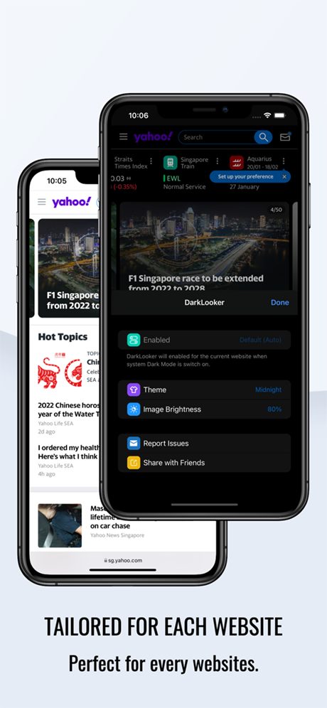 DarkLooker est une extension Safari. Il ajoutera automatiquement un mode sombre à chaque site Web que vous visitez et facilitera la lecture des pages Web en modifiant le jeu de couleurs. DarkLooker peut traiter automatiquement tout site Web que vous visitez dans Safari. Par défaut, il fonctionnera automatiquement avec l’apparence du système, de sorte que votre site Web n’activera le mode sombre que lorsque le mode sombre est activé pour l’ensemble du système. Vous pouvez facilement personnaliser les sites Web qui n’utilisent pas le mode sombre en fonction de vos propres préférences.